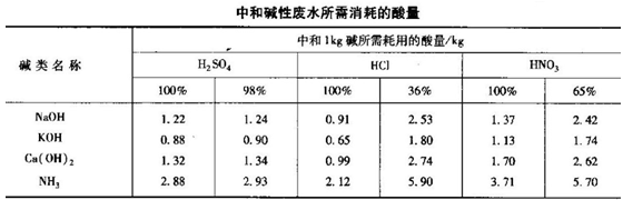 華泉PAC專家介紹在對(duì)堿性廢水進(jìn)行中和時(shí),可首先考慮采用酸性廢水的中和處理。若附近沒有酸性廢水時(shí)可采用投加酸進(jìn)行中和。工業(yè)用硫酸是在堿性廢水中和中應(yīng)用比較多的酸。中和各種堿性廢水所需的酸量可見下圖。